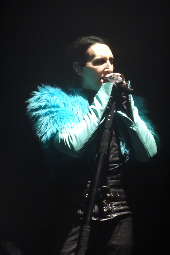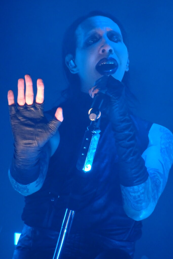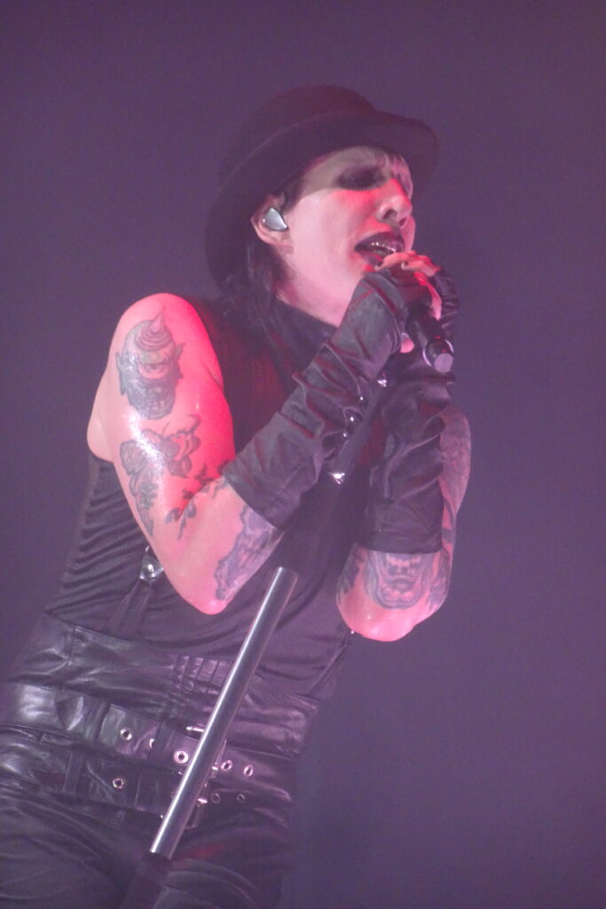 Pour conclure ce show monumental, le Révérend frappe fort. Il revient sous les acclamations de l’audience avec “Tourniquet”, plongeant la salle en 1996. Il apparaît juché sur ses iconiques échasses, silhouette démesurée et inquiétante, à mi-chemin entre créature gothique et prédicateur d’un autre monde. Le Manson acrobate et showman est bel et bien de retour.