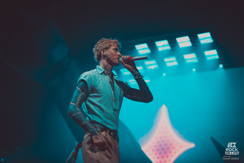Les titres s’enchaînent sans laisser de respiration et un medley particulièrement bien pensé condense trois époques en quelques minutes : “maybe”, “Wild Boy” et “El Diablo”. Trois morceaux pour trois chapitres du rap underground de Lace Up en 2012, au rap plus mainstream de Hotel Diablo en 2019 jusqu’au virage pop punk assumé de Mainstream Sellout en 2022. Les allers-retours dans sa discographie sont constants tout le long du set donnent ainsi à la soirée un relief singulier. Colson Baker navigue entre les styles avec une aisance déconcertante et le public, attaché à cette pluralité, le suit sans hésitation.