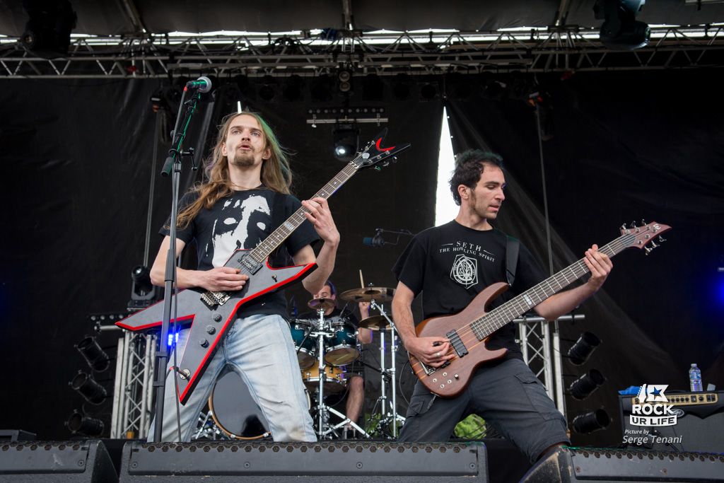 ANTICORPSE (Dave Mustage) – Il est loin d’être aisé de démarrer la journée dans un festival. A plus forte raison lorsqu’il s’agit de la troisième. Les spectateurs potentiels, fatigués des deux jours précédents restent trainer au camping d’autant que le dimanche est également la journée qui commence le plus tôt. Mais les Bretons d’Anticorpse se montreront ultra motivés, et à grands coups de riffs ravageurs ils vont réussir à drainer un public assez dense. Il faut dire que leur cocktail de death/black/trash est accrocheur. La batterie (tenue par Félix également batteur de Dawn Of Might qui a joué vendredi) est bien percutante. On pourra reprocher le côté un peu statique de certains membres, mais il est vrai que le groupe est encore jeune. Et si pour l’heure le quatuor peut encore être qualifié de “formation locale”, nul doute que cela ne devrait pas durer bien longtemps.