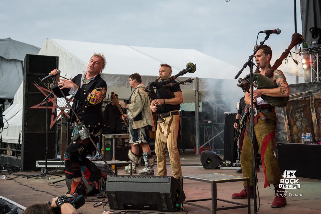 IN EXTREMO (Dave Mustage) – A nouveau changement total d’ambiance. Et quand on dit total, il faut bien comprendre to-tal. Pour faire simple, disons que si Rammstein et Corvus Corax avaient eu un enfant, cela aurait pu être In Extremo. De l’un il tiendrait sa puissance de jeu et les chants en allemand, de l’autre le côté festif et sautillant. Les Allemands nous embarquent dans leur univers celto-pagano-tribalo-médiévalo-métalo-folk hyper festif. Tout à fait le style à vous donner des fourmis dans les jambes. D’ailleurs, il semblerait bien que la fosse n’était plus qu’une fourmilière géante tellement tout le public semblait pris d’une “gesticulite” aigüe. Cela dansait dans tous les coins. Accompagnés par des instruments étranges dont certains sentent fortement la fabrication maison (comme par exemple celui en forme de pentagramme), les teutons nous ont balancé du lourd. Un son nickel, un florilège de leurs meilleurs titres (même si d’autres auraient également eu leur place), une ambiance de folie aussi bien sur la scène que dans le public, bref, le petit truc en plus, l’étincelle qui aura manqué chez Obituary, et qui aura fait de la prestation d’In Extremo l’un des meilleurs moments de ce festival.