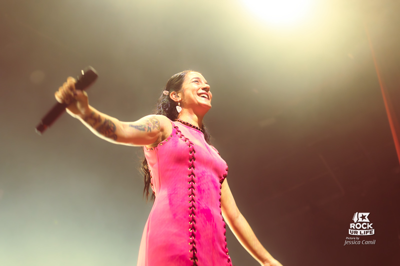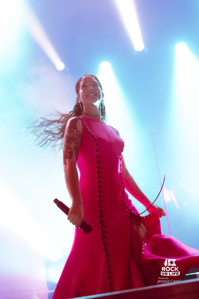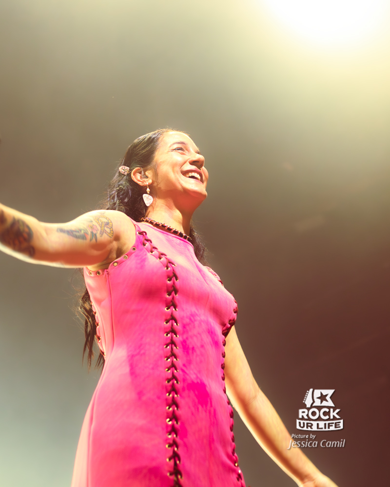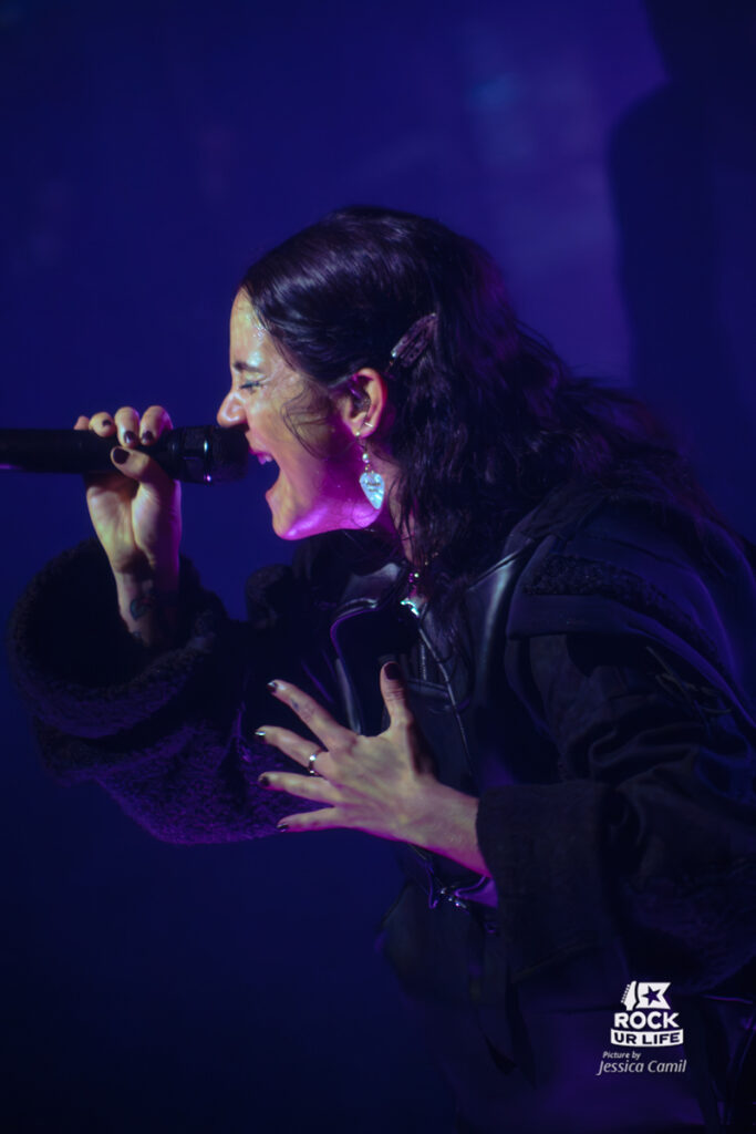 Mais si cette tournée s’appelle le Coda Tour, c’est pour célébrer l’album éponyme sorti en 2025. Ce premier opus avec Camille au chant est un succès total, marquant une renaissance fulgurante pour le groupe. Cette nouvelle ère insuffle un vent de fraîcheur et les nouveaux morceaux sont reçus comme des hymnes. “All For Nothing” monte crescendo en ouverture, tandis que “Say My Name” déclenche une marée ininterrompue de crowd surfers. Ce disque incarne l’équilibre parfait entre énergie explosive et émotion brute, une dualité qui prend tout son sens en live. “In Heaven” vient offrir une parenthèse éthérée chargée d’émotion, avant que la puissance du groupe ne reprenne ses droits.