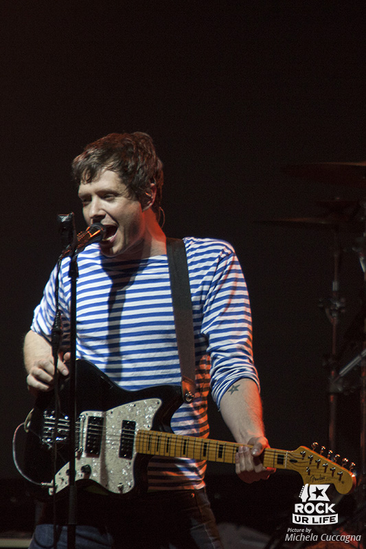Il est temps d’installer le matériel pour les Américains. La batterie est placée devant un double écran géant, les claviers de chaque côté de la scène. 20h35, extinction des feux. Défilé d’images de films, de documentaires, d’extraits vidéos, d’interviews, de news où l’on entend des OK puis des Go ! C’est parti. Entrée de OK GO sous les applaudissements et cris de joie du public. Après quelques notes de “Upside Down & Inside Out”, les canons à confettis se mettent en action. Cela ne s’arrêtera pas pendant toute la prestation d’une heure et demie (petite pensée à l’équipe de nettoyage qui est passée après !). Un set bien complet mêlant le nouvel album aux anciens morceaux, passant ainsi par des moments très pop, voir funky à d’autres plutôt rock. Le tout agrémenté d’un festival de lights. Tout l’arc en ciel y passera. C’est très joyeux et coloré à l’image de la musique de la formation. Cette dernière a cette énergie positive et communicative qui donne envie de danser et de sourire. Après “I Want You So Bad I Can’t Breathe”, le frontman Damian Kulash prendra la parole pour proposer un jeu de questions réponses. On pose les questions, il y répond. On aura surtout appris qu’en glace, il aime le parfum pistache. Il aime ce petit mélange sucré/salé. Fascinant. Après deux, trois blagues, le set reprend. L’assemblée les accompagnera dans une joyeuse petite chorale sur “This Too Shall Pass”. Puis vint ce qu’ils appellent leur “nerd moment”. Pour “There’s A Fire”, Damian va enregistrer des applaudissements cris et autres tapements de pied de l’auditoire pour ensuite les mixer dans une sorte de looper et s’en servir d’instrument pour la chanson. Il aura un peu de mal et s’en amusera beaucoup. Comme les autres membres du groupe d’ailleurs. Puis; il prendra sa guitare pour un joli moment acoustique sur un petit podium au milieu du Bataclan. Cette petite ballade sera écoutée religieusement par les spectateurs. Retour du combo en scène et c’est au tour du bassiste Tim Nordwind de nous distraire le temps que chacun retrouve ses marques. Au jeu des questions réponses : où as-tu acheté ton T-shirt ? Tu es plutôt chien ou chat etc. Il s’éclate ! Cris de joie dès que les quelques notes de “Needing/Getting” retentissent. La chanson célébrée dans un clip délirant sera reprise en chœur par une foule conquise. Le Bataclan se lâche peu à peu. “Do What You Want” aura raison de nous et nous entrainera dans un petit rock efficace pour laisser ensuite place à la planante “Skyscrapers”. À peine la scène quittée que des extraits de leurs clips défileront sur les écrans. Ils reviendront pour trois chansons dont leur tube “Here It Goes Again”. Le final aura été très festif, avec le public grimpant sur scène pour entourer OK Go et les canons à confettis qui cracheront leurs derniers morceaux de papier coloré. Magique. 22h. Fin du show.