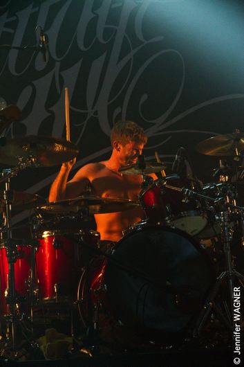 S’ensuit Miss May I. Troisième passage en à peine un an pour les coreux de l’Ohio, ils se donc déjà forgé un sacré public. Ils font leur arrivée avec le nouveau single “Relentless Chaos” repris par un Bataclan qui est assurément motivé. Un circle pit aussitôt demandé, le ton est donné. Habitués jusqu’ici au Batofar, leur show prend une toute autre dimension ce soir. Ayant évolué d’une part entre temps, l’espace à présent disponible leur permet en plus une expression scénique plus conséquente. Nous auront droit à une nouvelle chanson répondant au nom de “Hey Mister”. On notera que le temps de jeu a été limité pour un groupe qui a eu l’opportunité d’assurer un show en headline lors de sa dernière venue mais il reste tout de même deux autres formations. En tous cas, ce soir était à coup sûr leur meilleure prestation française. Le clou maintenant bien enfoncé, c’est impatient qu’on se prépare pour The Ghost Inside.