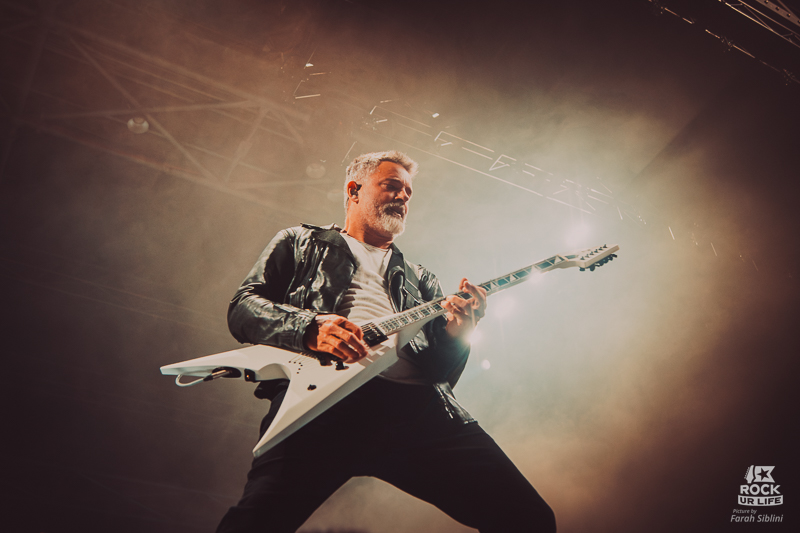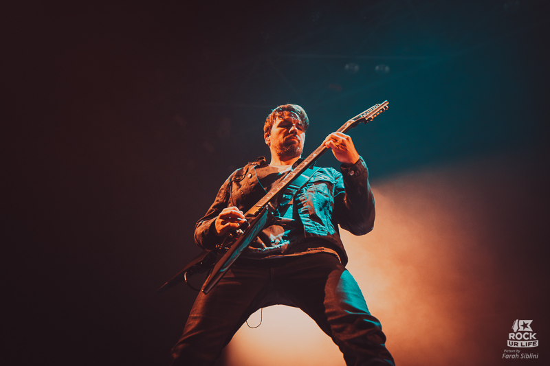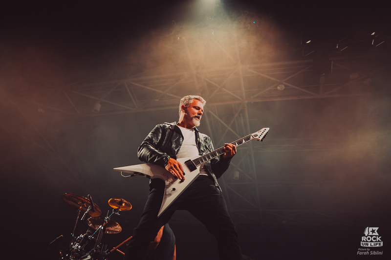 Visuellement, les lumières rouges et vertes renforcent l’ambiance dramatique, même si les musiciens restent souvent dans la pénombre. Joel Birch arpente sans cesse la scène, haranguant une fosse encore timide, tandis que la batterie tient l’ensemble d’une frappe chirurgicale. Peu à peu, l’atmosphère monte en intensité, jusqu’à la ballade finale qui apporte une respiration bienvenue. Avant de quitter la scène, Joel rappelle combien il est bon d’être de retour à Paris. Un échauffement solide, qui installe parfaitement la soirée.