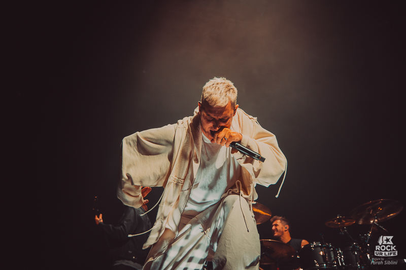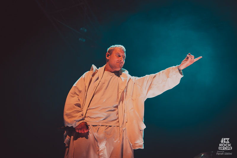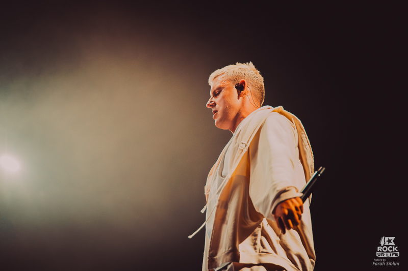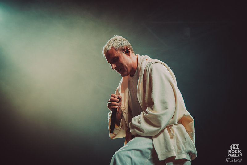 Visuellement, le show bascule dans une autre dimension. Le pont métallique reliant les deux scènes s’élève au plafond dans une pluie d’étincelles. Sur “Cemetery Bloom”, Winston est entouré de danseurs vêtus en sorciers dans une mise en scène quasi rituelle. Plus tard, un trio à cordes introduit “Chronos”, avant une interprétation bouleversante de “Darker Still”, commencée en acoustique sur la scène B et illuminé par tout le Zénith.