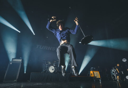 Justement, le charisme, TURNSTILE connait bien ça. On ne sait toujours pas si ce sont les pas de danse caractéristiques du frontman Brendan Yates, les cheveux bleus de Daniel Fang installé derrière ses fûts ou simplement le groove terriblement addictif de leur musique qui ont attiré autant de jeunes fanas de hardcore voir la bande de Baltimore, mais dans tous les cas, Turnstile figure comme un des groupes les plus attendus de ce line up. Chaque membre est une pile électrique, la plus grosse charge étant néanmoins délivrée par le chanteur, qui, vaguant de droite à gauche de la scène (et qui parfois décide même de se mêler au public), prend plaisir à faire participer la foule au maximum en lui tendant le micro, l’encourageant à monter sur scène ou à slammer.Lle starter pack pour foutre le bordel, en somme. Proposant une setlist regroupant les titres les plus efficaces de chaque EP/LP (entre autres “Death Grip”, “New Rules [“Pressure To Succeed”], “Step To Rhythm, “7/Keep It Moving”, “Pushing Me Away” [“Step 2 Rhythm”], “Gravity”, “Drop”, “Fazed Out” [“Nonstop Feeling”]), le quintette s’autorisera même une cover de “Sailin On” des Bad Brains, reprise par un parterre de fans survoltés. Un set intense passé trop vite donc, mais les Américains seront de retour à Paris dès le 26 avril prochain à La Mécanique Ondulatoire. Le rendez-vous est pris !