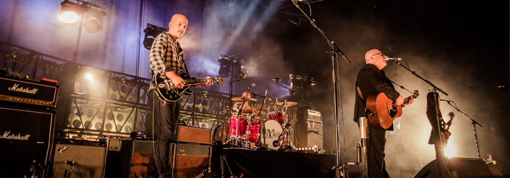 Les Pixies proposent ce soir une prestation intimiste, très sobre voire minimaliste, qui s’incarne d’abord par l’absence de décors sur scène. Celle-ci est compensée par un jeu de lumières travaillé qui met souvent les musiciens en silhouette pour un résultat à la fois simple et esthétique. Elle passe aussi par un jeu de scène et des échanges avec la salle inexistants. Enfin, le parti pris de la sobriété ressort également dans les tenues des musiciens : Black Francis porte un costume noir assorti à des petites lunettes de vue qu’il ne cesse de remettre en place sur son nez alors que Paz Lenchantin revêt une jupette et petit pull noir. Sobriété ne veux pas dire manque d’envie et d’énergie, bien au contraire. Chacun des titres joués ce soir est exécuté à la perfection et dégage une puissance inouïe. Le groupe joue sur les reliefs, alternant subtilement entre douceur et rage.
