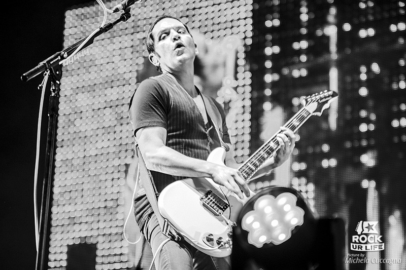 Très tôt, quelque chose de sublime émane de la scène. Un sentiment profondément cathartique, précieux, presque réconfortant, s’échappe de la sombre brume des paroles et touche le public en plein cœur. Le décor a lui aussi son importance : diffusant simultanément images de clips et captation live, il offrira une dimension bouleversante à “Without You I’m Nothing” lorsqu’il illuminera les écrans du visage de David Bowie.