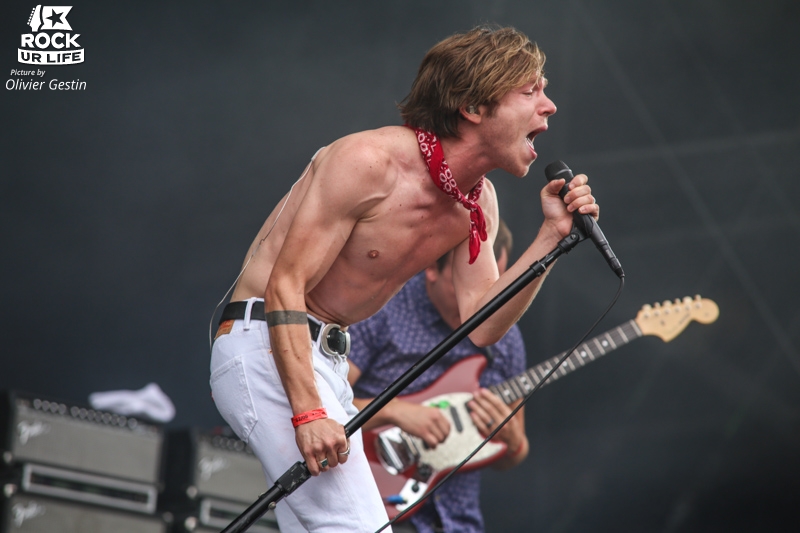 CAGE THE ELEPHANT (Grande Scène) – 15h30, le grungy Brad Shulz, diadème de princesse, lunettes noires et polo blanc aux rayures rouges, déboule seul sur scène et entame un instrumental à la guitare en guise d’intro. Ses acolytes Daniel Tichenor (basse), Jared Champion (batterie) et enfin son frangin de chanteur Matt Shulz apparaissent successivement, sous les acclamations des premiers festivaliers venus en nombre, malgré l’heure de la digestion/sieste. Dès “Spiderhead” ouvrant le dernier album “Melophobia” paru en octobre dernier, le frontman, tout de blanc vêtu et foulard rouge autour du coup, ne tiendra plus en place et mettra d’emblée une bonne ambiance, n’hésitant pas à se déplacer et sauter partout, utilisant à fond l’avancée de scène pour être au plus près du public, au grand dam du roadie tenant le cable du micro. Véritable pile électrique, animée par les compositions mélangeant mélodies britpop et un son garage très ‘ricain, Matt ne se tient plus et ira même jusqu’à slammer sur la foule dès le second titre, “In One Ear”, l’un des singles du premier effort “Cage The Elephant” (2008). Le set mettra d’ailleurs en avant le troisième opus, avec pas moins de six morceaux joués sur un total de treize titres. Gros son, grosse énergie résolument rock, quoi de mieux pour inaugurer cette nouvelle édition de Rock En Seine !