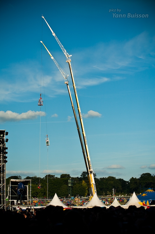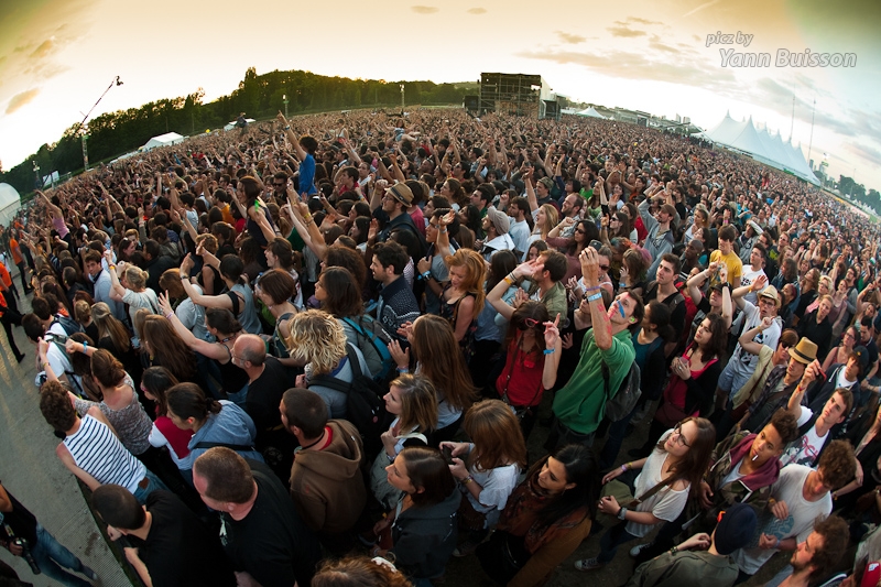 La journée débute à 16h30 avec NEW POLITICS à la scène Bagatelle. D’emblée, le trio danois, qui distille un mélange de rock, hip hop et power pop, communique bien avec le public rassemblé sous un soleil radieux. Le set comprend pour la plupart des morceaux du premier album “New Politics” sorti en 2010 tels que “Love Is A Drug”, “Dignity” et bien entendu l’explosif “Yeah Yeah Yeah” en guise de final qui mettra tout le monde d’accord. La foule de Longchamp aura même le privilège d’entendre de nouvelles chansons dont “Only For The Night” sur laquelle le frontman David Boyd fera chanter le public sur le refrain mais aussi “Electric Jungle” débutant avec des cris de singes. En une heure de show, ça bouge et ça saute partout des deux côtés de la scène : la fosse devient un trampoline géant alors que le chanteur s’excite tellement qu’il se roule par terre et ira même prendre un bain de foule pendant que Søren Hansen (guitare/chant/claviers/programmation) et Louis Vecchio (batterie/percussions) se déchaineront sur leurs instruments ! Quelle incroyable énergie ! On comprend maintenant la comparaison avec Rage Against The Machine en plus de certaines parties rappées dans les chansons. Notre premier coup de coeur de la journée ! A voir absolument en live ! Bonus : notre interview du groupe à peine sorti de scène à lire ici.