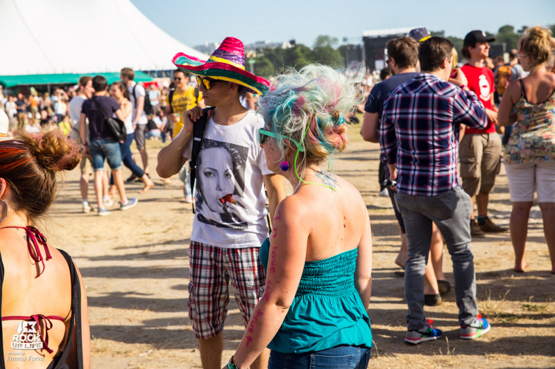 Même si quelques gouttes de pluie sont apparues la veille, le soleil et la chaleur sont toujours de sortie pour cette seconde journée à Solidays.