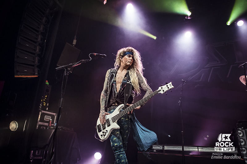 Michael Starr (chant), Satchel (guitare), Lexxi Foxx (L’Oréal) et Stix Zadinia (batterie) pètent le feu. Notre cher bassiste est sorti de sa cure de désintox, suite à son addiction au sexe, et déborde d’une inhabituelle vitalité ! Comme quoi ! La finesse des textes est une fois encore au rendez-vous. De “Fat Girl” à “Asian Hooker”, sans oublier “Community Property”, les ondes positives envahissent le Bataclan. Bien évidemment, la partie “sketch” du set prend, une nouvelle fois, pas mal de place. Néanmoins, et à la surprise générale, le quatuor a étoffé son répertoire. Les blagues fusent à vitesse grand V, Paris s’esclaffe encore et toujours, mais avec un souffle nouveau, enfin !