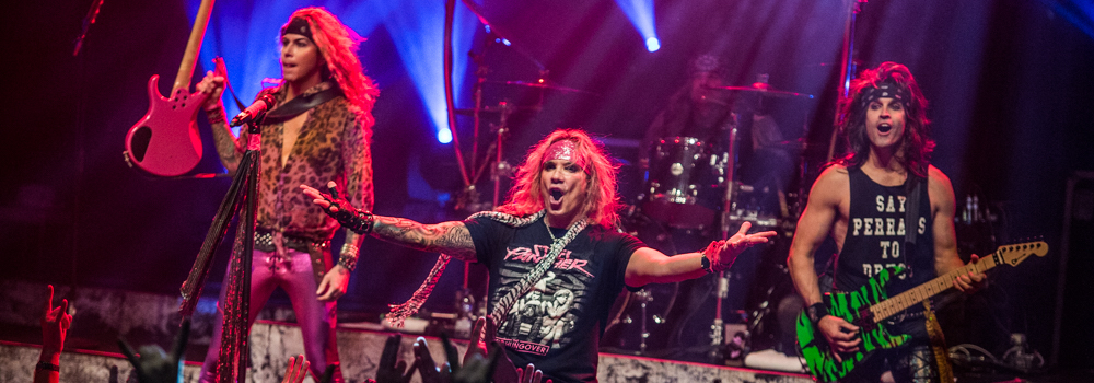 Il est 21h et des paillettes lorsque les lumières s’éteignent. Parmi les cris (à peine) assourdissants des fans au premier rang, on peine à entendre “I Love It Loud” de KISS. Pas de doute, on assistera bien à un concert de glam ce soir. Les quatre musiciens viennent enfin s’installer à leur place respective, et c’est “Eyes Of A panther” qui lance le concert. Les panthères sont égales à elles-mêmes. Toujours aussi déjantées, on assiste a un set, mais aussi a un comic show. Encore une fois, le quatuor mise sur son côté ultra parodique, et se mettent à lancer une dizaine de vannes par minute. Certains disent que c’est un peu trop “nous on vient là pour le plaisir de la musique”, d’autres trouvent que ça fait parti du jeu, et se font un malin plaisir à entendre Satchel (guitare) clasher ses compagnons.