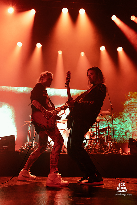 Les singles récents – “I Got Your Back (If You Got Mine)”, “I Stand Below It All” – révèlent une facette plus mélodique, pensée pour élargir l’horizon du quatuor. Le chanteur arpente la scène, grimpe sur les plateformes, et “Darkest Days” s’éclaire d’une mer de flashs sollicitée par le guitariste Jesse Kataja. Si certains titres se ressemblent et que ce virage plus mélodique surprend les fans du premier album, l’impact reste indiscutable. “Lake Of Fears” puis “Feels Like” bouclent un set solide qui aura, peu à peu, conquis Paris. Une mise en bouche efficace.