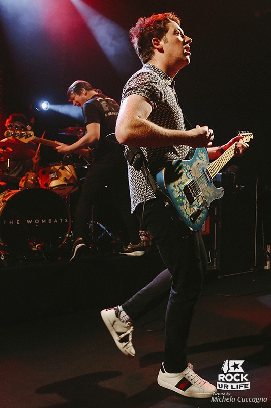 21h15, THE WOMBATS arrive sur scène dans une salle débridée. Les premières notes de “Cheetah Tongue” se font entendre. Sous de très belles lumières et un son impeccable, le groupe britannique promet une soirée mémorable dès les premières secondes. L’ambiance monte encore d’un cran et et le sol en vient même à trembler. Sur scène, l’énergie est semblable à celle de la salle. Tord Øverland Knudsen n’arrête pas de danser tout en jouant de la basse, Dan Haggis est à fond derrière sa batterie et Matthew Murphy donne tout ce qu’il a. Le trio n’hésite pas, entre chaque chanson, à faire des blagues et à communiquer avec ses fans. Le batteur parlera un français imparfait mais volontaire pratiquement tout le long du concert. Les fans sont ravis, les musiciens aussi.