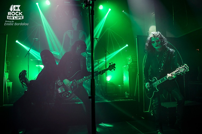 Avec les quatre musiciens grimés de leur maquillage sombre, on est d’emblée plongé dans l’univers de la bande. Mais on retiendra principalement la prestation du guitariste Jonathan Hulten. Mention spéciale à son costume de veuve noire munie d’un voile qu’il gardera sur le visage pour la plus grande partie du set, affublé de petites chaussures à talonnettes et possédant des lentilles de couleurs rouges vives. On peine à détourner nos regards de ce jeune homme. Sans parler de la présence scénique du monsieur. Sa façon de se mouvoir est remarquable, accompagnant ses soli de guitares à des pas de danse contemporaine, un peu comme sur la pochette de l’album “Children Of The Night”, où une figure pose en faisant des pointes.