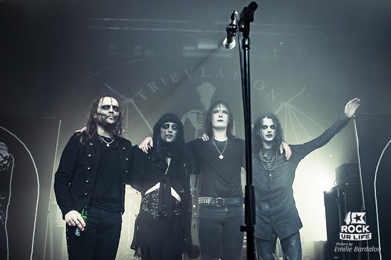 Il est temps d’accueillir TRIBULATION sur la scène du Petit Bain. Après avoir reçu un gros coup de pouce suite à sa première partie d’Arch Enemy sur la tournée européenne l’année dernière, des fans ont fait le déplacement uniquement pour les Suédois. Le quatuor prend possession de la scène alors que “La Vie En Rose” d’Edith Piaf retentit dans toute la salle.