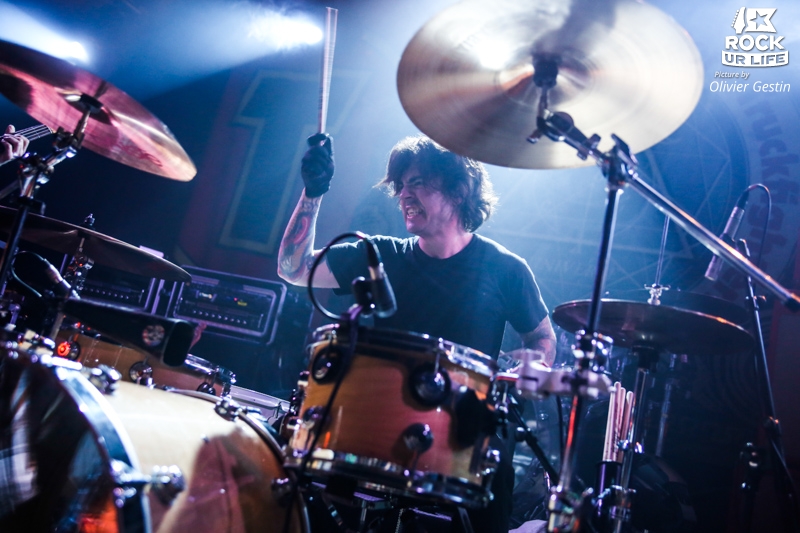 Après leur performance effervescente au Glazart avec les nordiques de Kvelertak, le rock stoner metal alternatif des suédois de TRUCKFIGHTERS vient à nouveau fouler le sol de la capitale -sans compter l’interview faite en janvier dernier. Il est 20H55 quand l’éclairage de la salle s’éteint et que démarre en fond sonore “Altered State” pour annoncer le groupe sur scène jusqu’à ce que, au bout de dix minutes de patience qui s’éternisaient, les trois gars d’Örebro apparaissent arborant torse nu ou bermuda, ou encore la combinaison des deux en ce qui concerne le guitariste. Le show est lancé avec “Mind Control”, le même morceau qui ouvre leur quatrième album fraichement sorti, “Universe“, ce qui pose déjà la couleur du set qui exposera en majeure partie leur nouvel essai, ajouté à la tenture de fond de scène qui reprend la fameuse pochette au flirt Illuminati. Comme on pouvait s’y attendre, le son live de la formation est largement brouillé et n’est pas comparable à leur propreté studio, mais ne se résout pas pour autant à faire passer à la trappe leur puissance sonore. Dango, le guitariste, est monté sur ressorts, ne cesse de sauter, courir et faire des têtes dignes de rugbymen néo-zélandais, bouche grande ouverte, langue tirée et yeux écarquillés, dans tout l’aspect surexcité du délire. Ce qui vient quelque peu remuer Ozo, le chanteur bassiste, qui reste fidèle à sa tâche, avec une certaine sobriété, et la discrétion du batteur. Le groupe n’est pas très loquace et enchaine les morceaux tout naturellement. Malgré ce brouillage sonore apparent, les ondes graves et grésillantes nous poussent à un balancement de tête et du corps presque inévitable. Le public devient mouvant et forme une sorte de vague insatiable, sur laquelle viennent plonger divers individus, prenant leur élan sur scène, et profitent de l’occasion pour faire du air guitare aux cotés des musiciens. La prestation dure une heure et parcourt une dizaine de titres. Sans grande surprise, le rappel honore les hits du combo, faisant côtoyer nouveau et ancien, avec leur single “Prophet”, suivi de “Desert Cruiser”, évidemment réclamé par l’auditoire, ne l’ayant pas entendu pendant le set. “Prophet” parvient à reproduire son obscurité absorbante avec puissance et le groupe lègue en majeure partie “Desert Cruiser” au chant du public. Truckfighters fait durer son titre phare, à l’osmose orgasmique, jusqu’à ce que chanteur et guitariste finissent en slam dans la foule, signant là la fin du show.