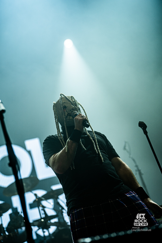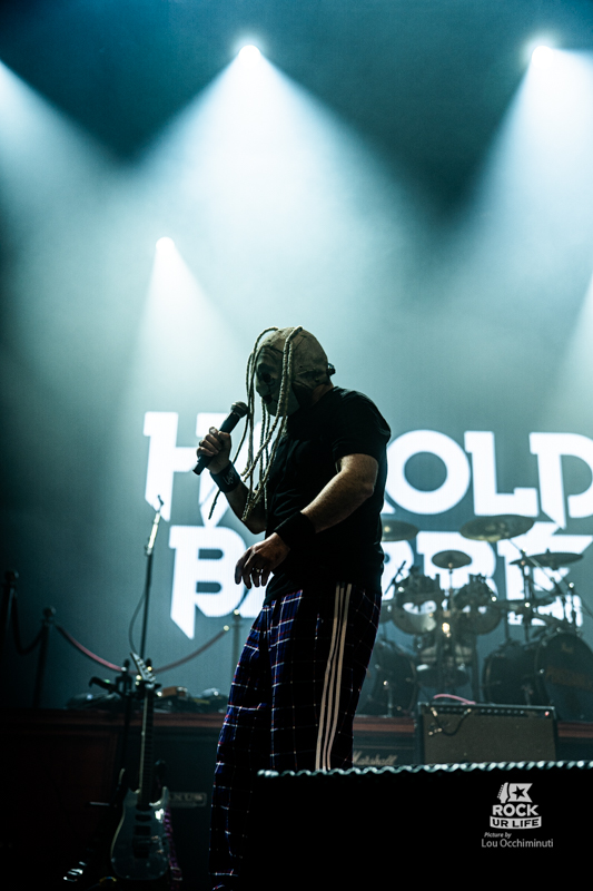 Avant même que les premières guitares ne retentissent, la soirée débute par une intervention pour le moins inattendue avec l’arrivée sur scène de l’humoriste HAROLD BARBE. Pendant une dizaine de minutes le stand-upper prend en main un Zénith encore en train de se remplir. Avec sa carrure massive et sa barbe imposante qui lui donnent des allures de Viking, il commence par se présenter et raconter son parcours, même si une partie du public semble déjà bien connaître son goût assumé pour les musiques les plus bruyantes. Peu à peu, son intervention glisse vers un humour taillé pour l’audience du soir. Il propose notamment un sketch autour de reprises parodiques de morceaux du groupe Slipknot, affublé d’un masque évoquant vaguement ceux portés par Corey Taylor sur scène. Les mélodies sont détournées avec un sens de l’absurde assumé ponctué de quelques piques politiques, déclenchant les premiers rires de la soirée. Une entrée en matière parfaitement dans l’esprit du programme entre metal et humour décalé, le ton est donné avant même que les amplis ne commencent à gronder.