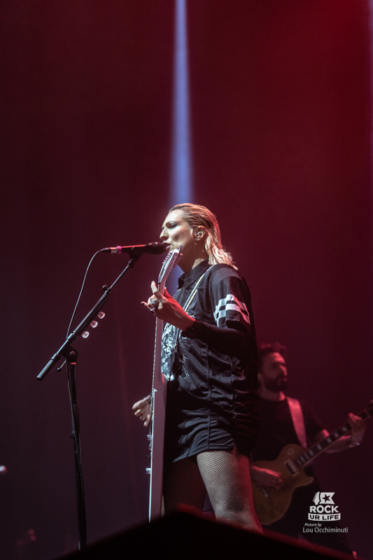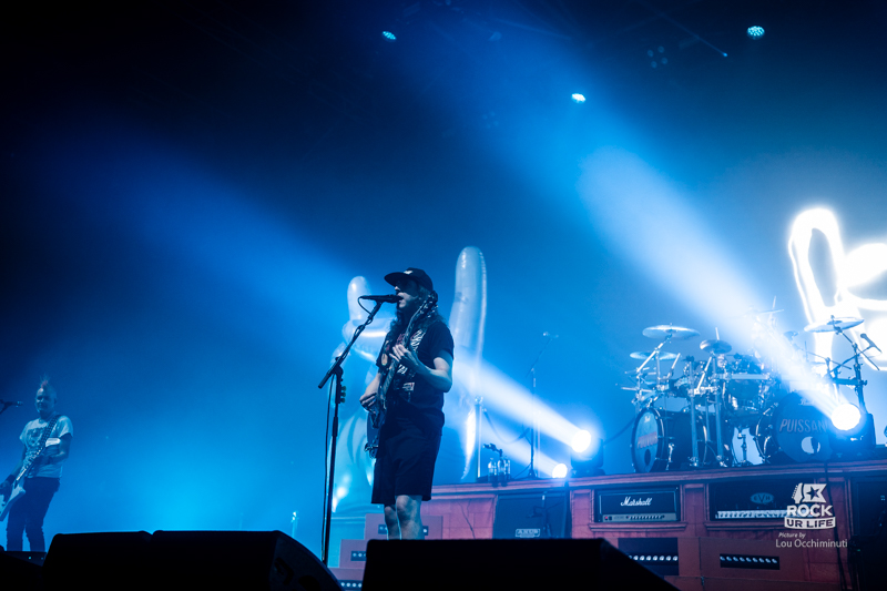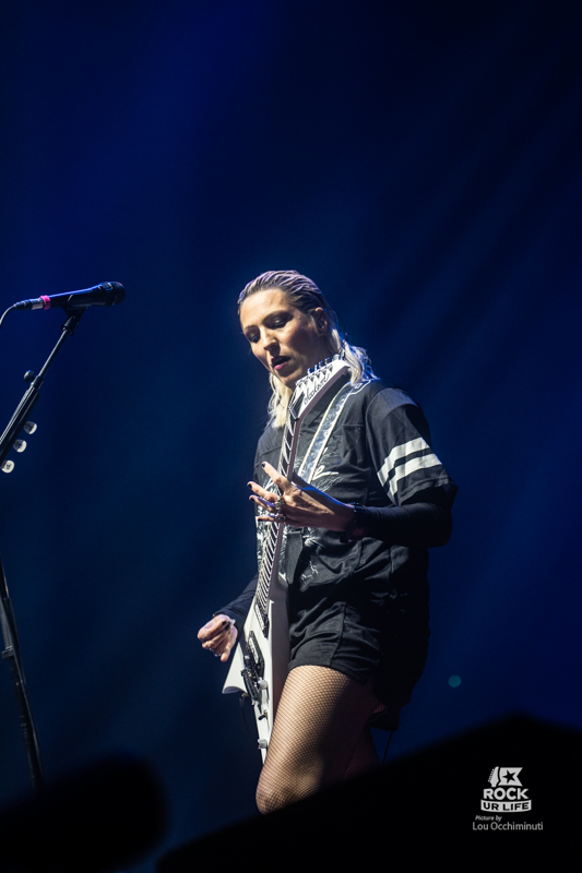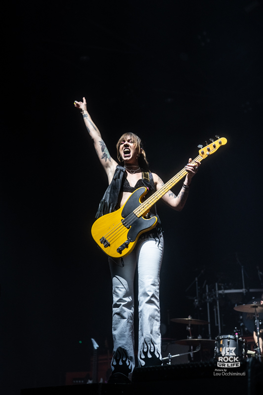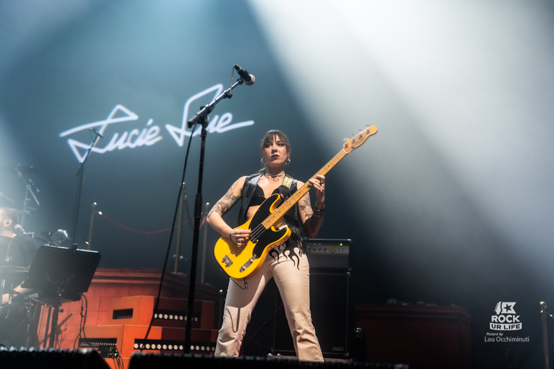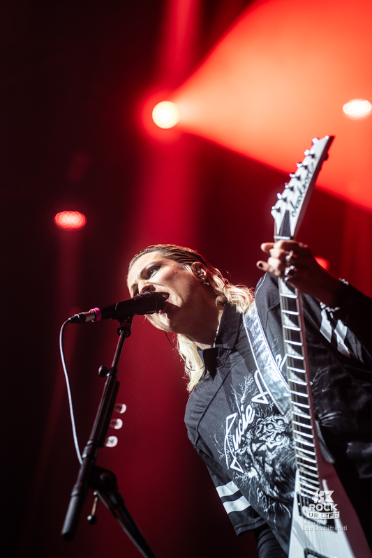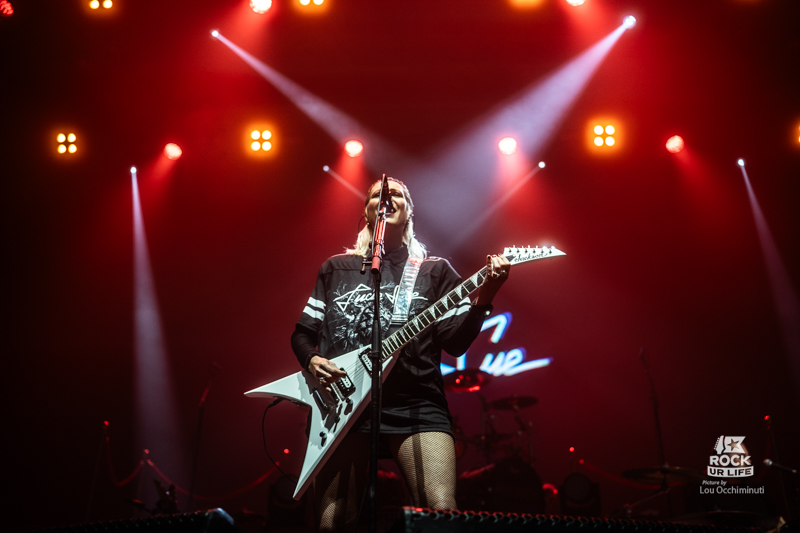 Dans un registre plus classique de première partie, LUCIE SUE prend le relais pour lancer la soirée en musique devant un Zénith déjà bien rempli. Autour de la chanteuse et guitariste qui donne son nom au projet, la formation développe un rock alternatif musclé aux accents très marqués des années 1990, quelque part entre grunge, metal alternatif et énergie punk. Porté par des riffs massifs et une intensité immédiate, le groupe capte rapidement l’attention du public. Impossible de rester totalement immobile face à ces attaques de guitare aussi frontales. Les premiers rangs de la fosse commencent rapidement à s’agiter. Très à l’aise sur scène, Lucie Sue multiplie les interactions et transforme rapidement la salle en véritable terrain de jeu. Elle demande même à l’audience de s’asseoir avant de lancer un saut collectif qui fait bondir toute la fosse, tandis qu’un circle pit se forme quelques instants plus tard. Avec une présence scénique généreuse et une envie manifeste de chauffer la salle, Lucie Sue remplit parfaitement son rôle et prépare le terrain pour la soirée qui s’annonce.