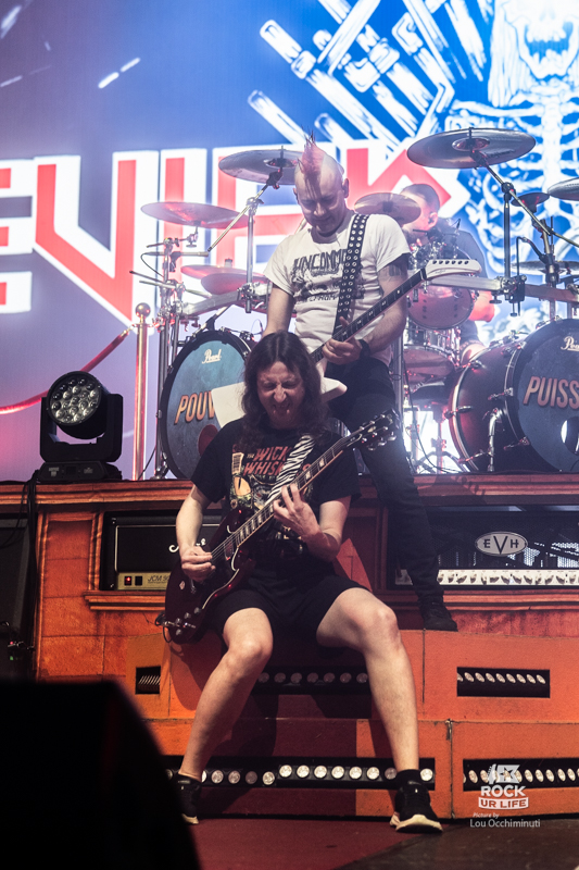 Les lumières s’éteignent enfin et acclamés par l’auditoire ULTRA VOMIT surgit sur scène et lancent immédiatement les hostilités avec “Evier Metal” rapidement suivi de “Le Coq”. Le ton est donné avec des riffs massifs et énergiques qui captent immédiatement les premiers rangs qui partent en pogos instantanés. Après ce début tonitruant, la formation nantaise prend le temps de faire les présentations. Fidèle à sa réputation, Ultra Vomit installe d’emblée une atmosphère de franche camaraderie. Les musiciens discutent avec l’auditoire, notamment le batteur Manard qui en profite pour commencer à faire des blagues, comme s’il retrouvait de vieux amis. Le Zénith répond avec enthousiasme, prêt à suivre le groupe dans toutes ses absurdités.