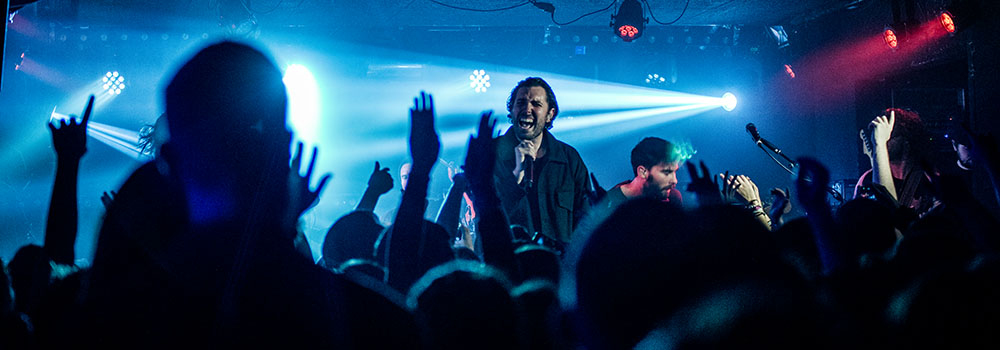Après une mise en bouche très satisfaisante, la patience est de mise. L’excitation est à la hauteur de l’évènement, figurant comme une véritable occasion pour les nombreux fans de voir la bande jouer dans un cadre intimiste, loin des arènes sold out Outre-Manche. Après une demi-heure d’attente, les diverses conversations aux quatre bouts de la salle se verront soudainement interrompues par l’obscurité dans laquelle cette dernière se verra plongée. Sous un tonnerre d’applaudissements, les tant attendus YOU ME AT SIX montrent enfin le bout de leurs nez, lançant rapidement les hostilités par une tactique des plus efficaces : “Bite My Tongue”, transformant en moins de deux la salle remplie et ultra-réceptive en un géant capharnaüm. Ni une, ni deux, la formation enchaîne sans broncher avec “Fresh Start Fever”, faisant littéralement exploser l’ambiance : pogos, sauts frénétiques, bières qui volent, tout est de mise pour faire trembler le sol du Backstage. Si le rythme de ce début de concert se veut effréné, le dialogue peu à peu instauré par Josh Fransceschi avec l’assemblée laissera à cette dernière le temps de reprendre ses esprits.
