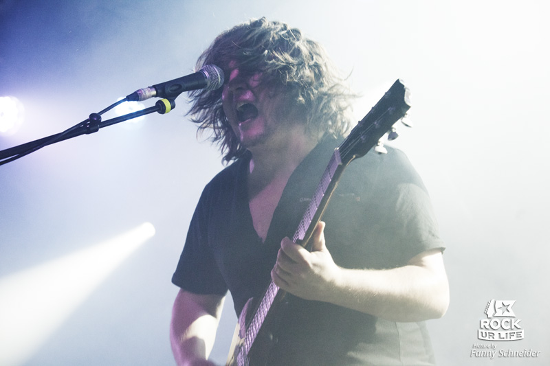 Ensuite c’est au tour de STATES AND EMPIRES de maintenir la chaleur ambiante du Divan Du Monde. En allant faire un tour du côté de leur page Facebook pour prendre quelques informations pendant l’écoute de l’EP “Giants” sorti en septembre dernier, on est tout de suite interpellé par la date de création de la formation (2013) et par la qualité des compositions. Non, nous n’avons pas à faire à des débutants. Quand le chanteur-guitariste Neil Starr et le bassiste Will Davies (Attack! Attack!) et le batteur Johno Fisher (Evita) créent leur propre groupe, ça donne States And Empires. On retrouve également cette même qualité sur scène. Le batteur et le bassiste seront relativement discrets, en revanche, le frontman fera le spectacle que ça soit au chant ou pendant les discours entre les chansons, même s’il aura tendance à souvent se cacher derrière ses longs cheveux.